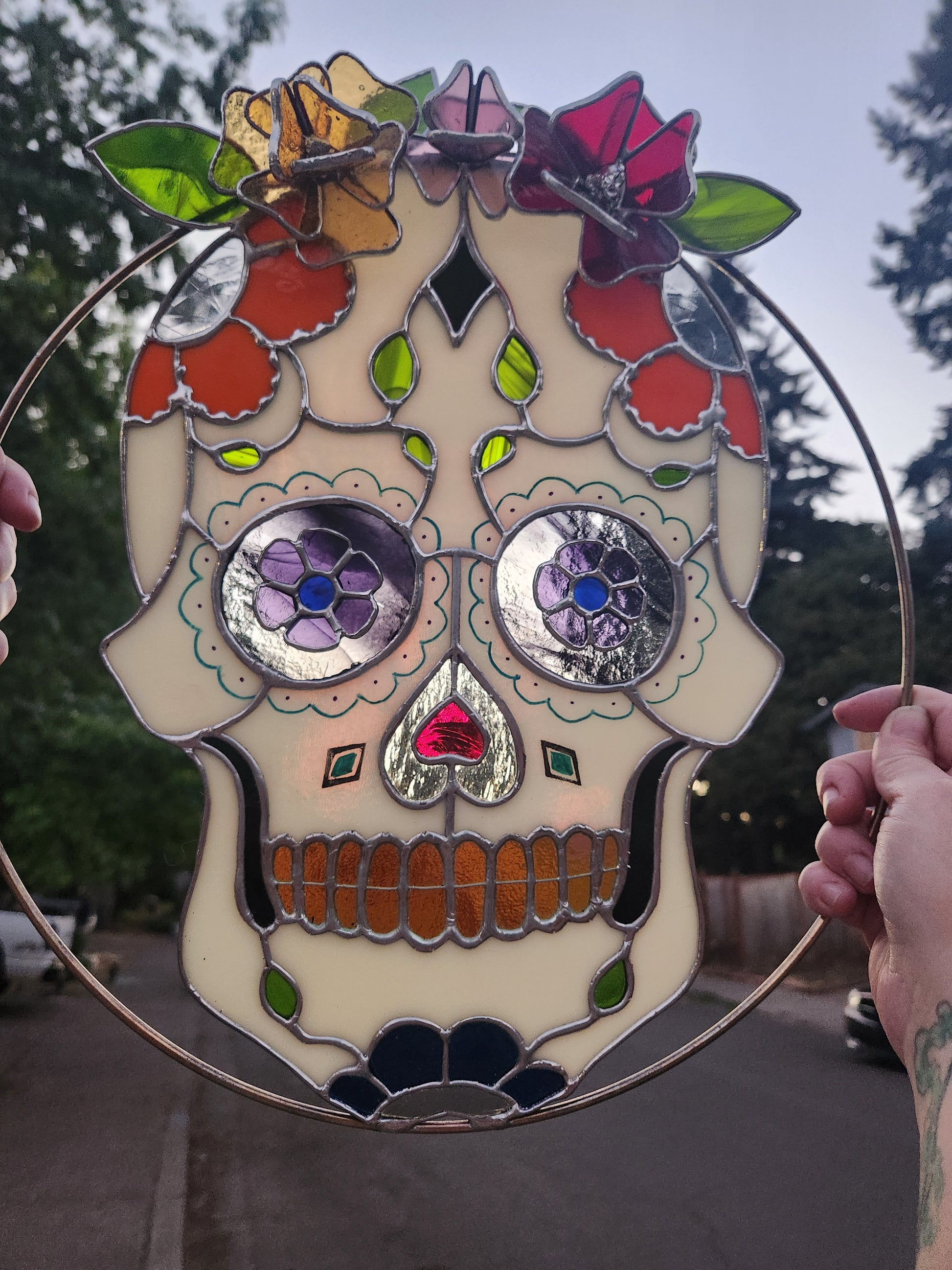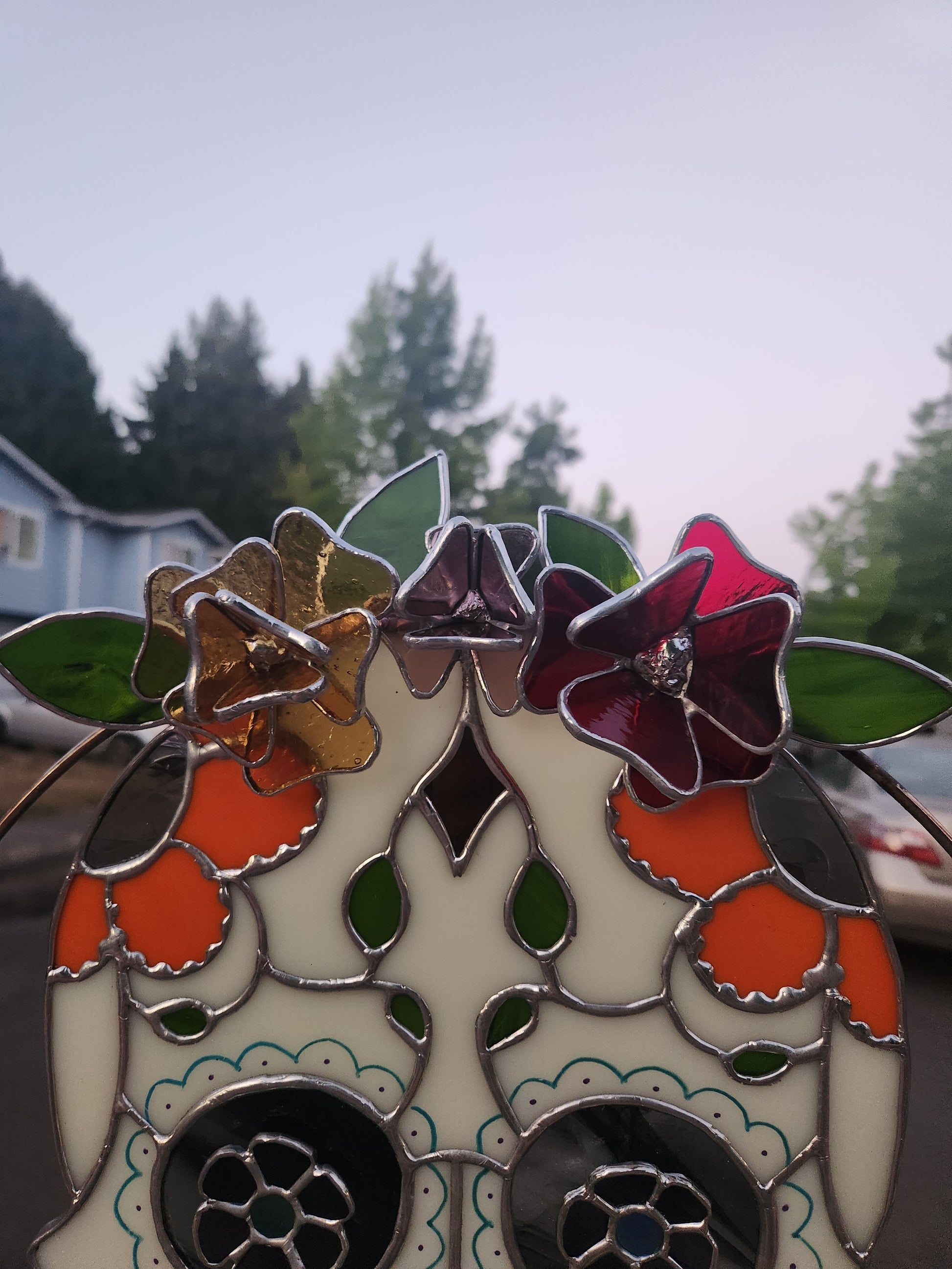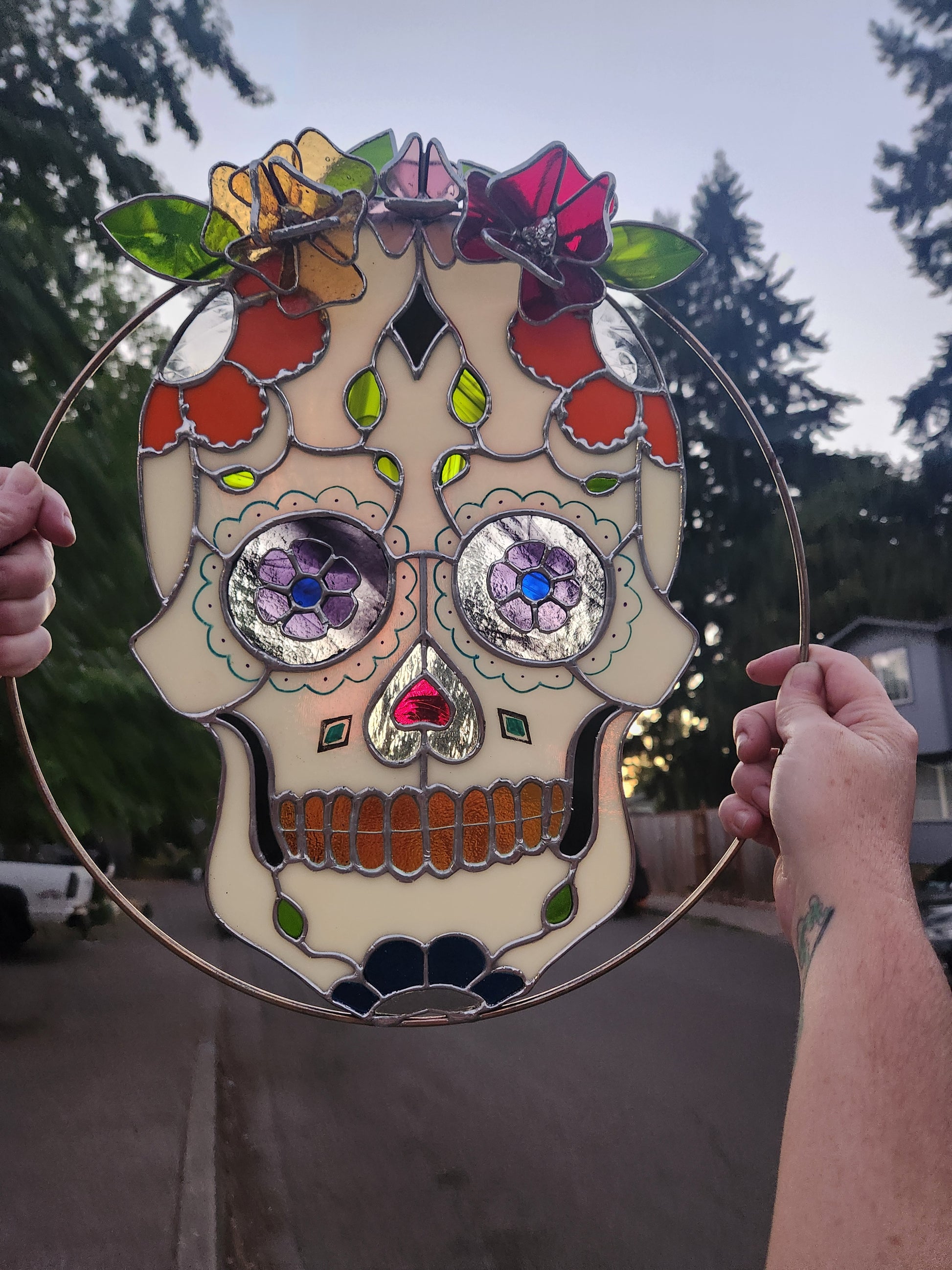 "Abuela" Día de los Muertos Sugar Skull Stained Glass Panel