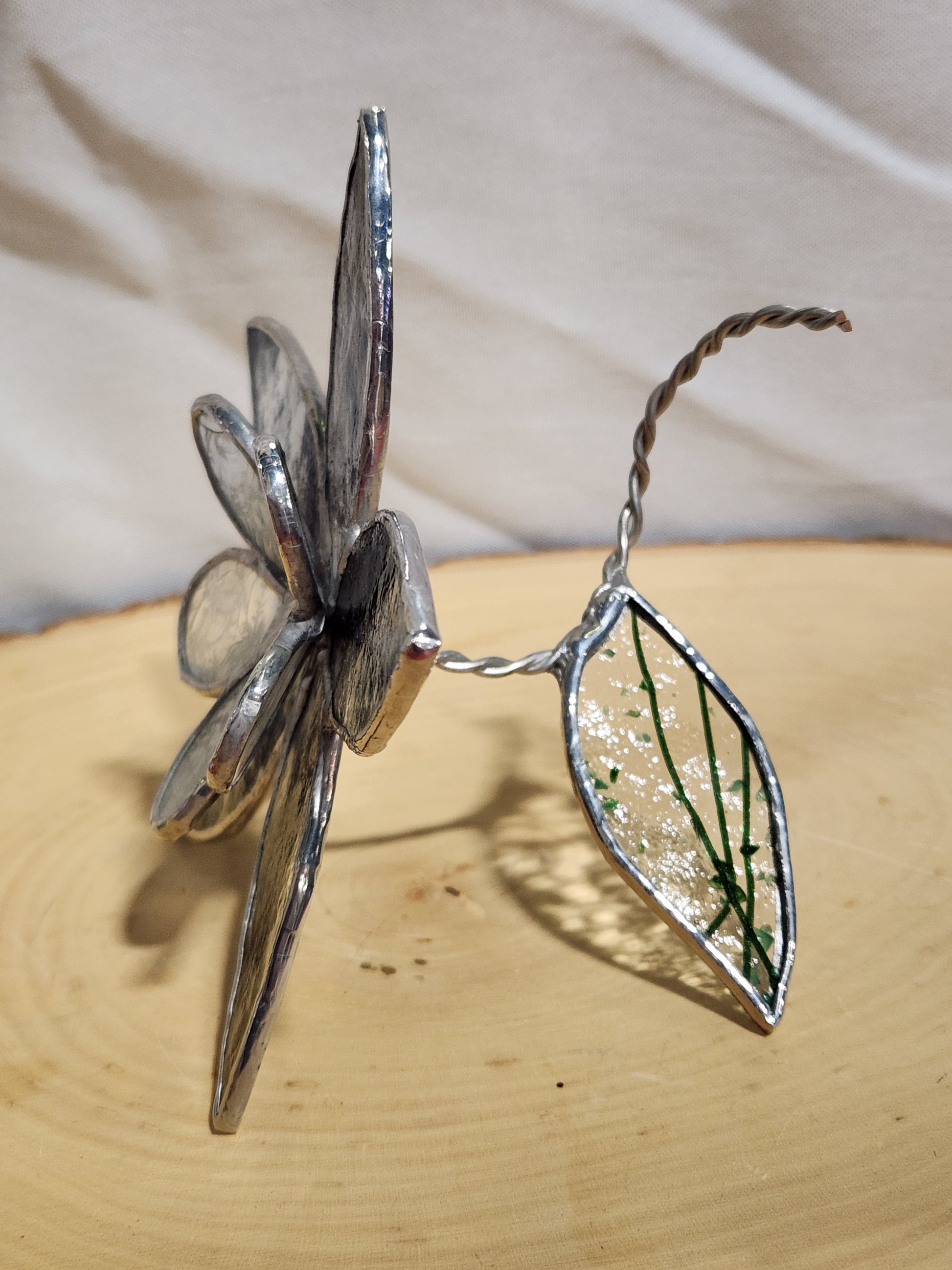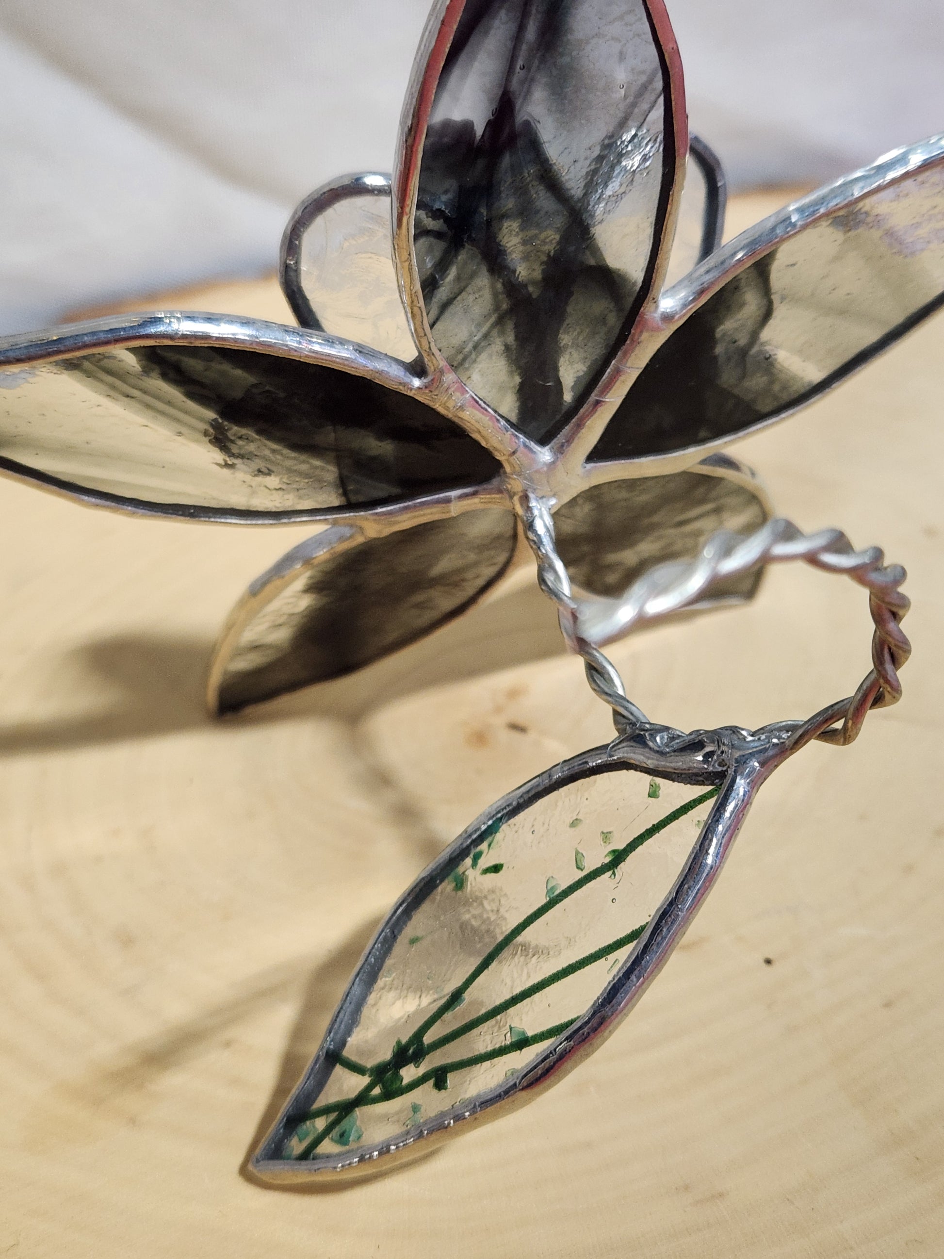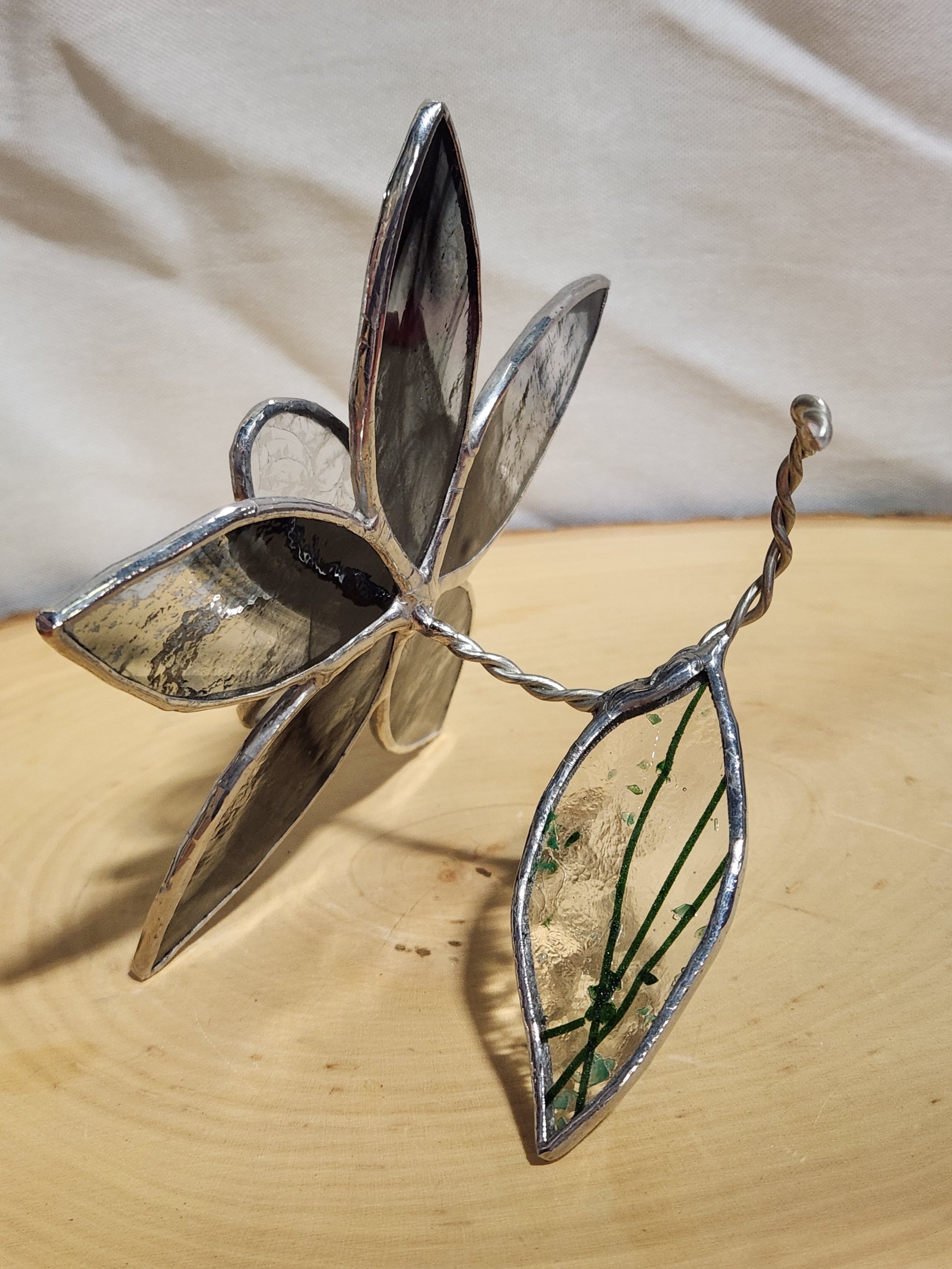 Black & Clear Streaky Textured Glass and Ice Flake Stained Glass Table Flower