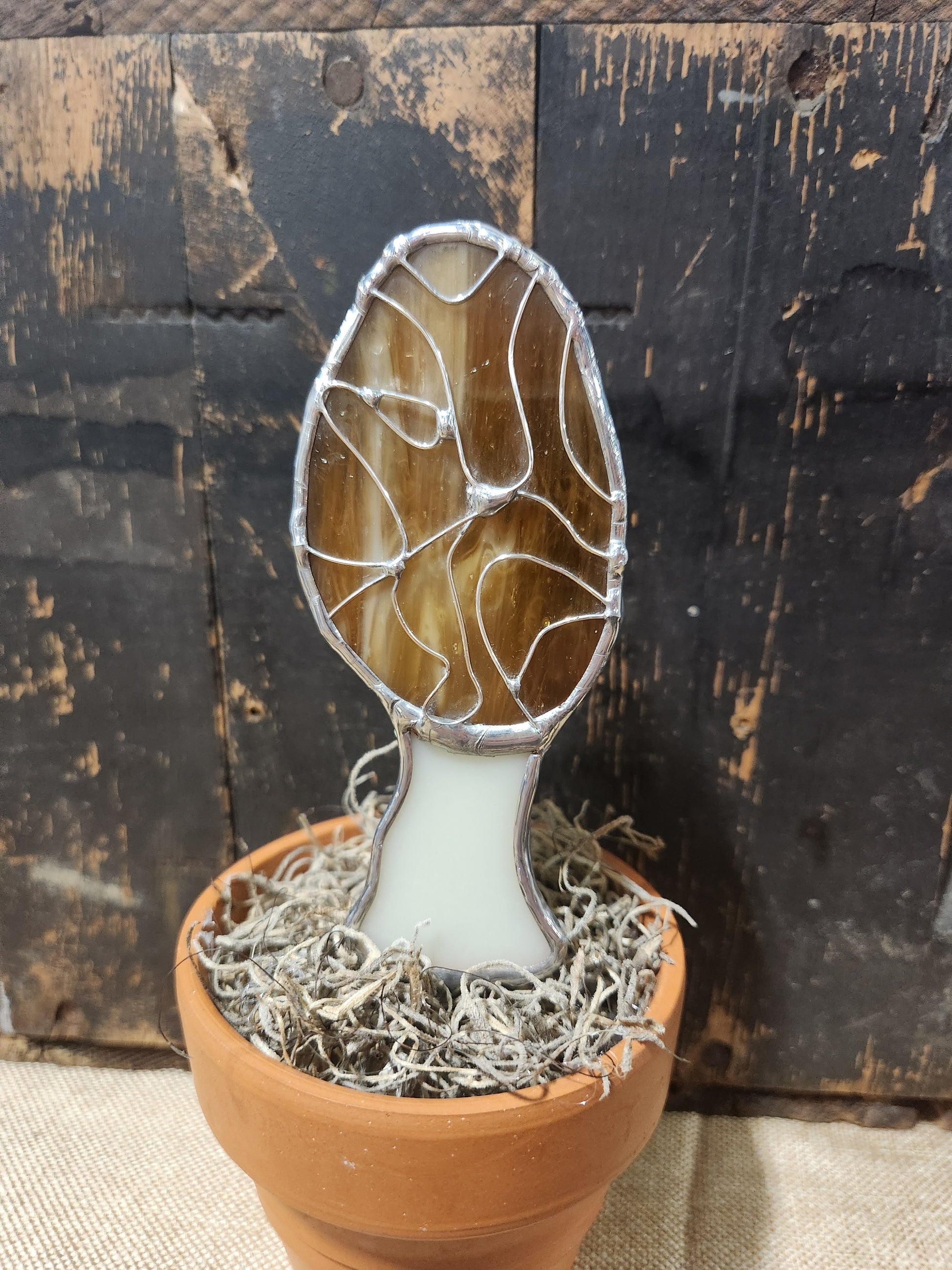 Life-Sized Morel Mushroom Stained Glass Plant Stake